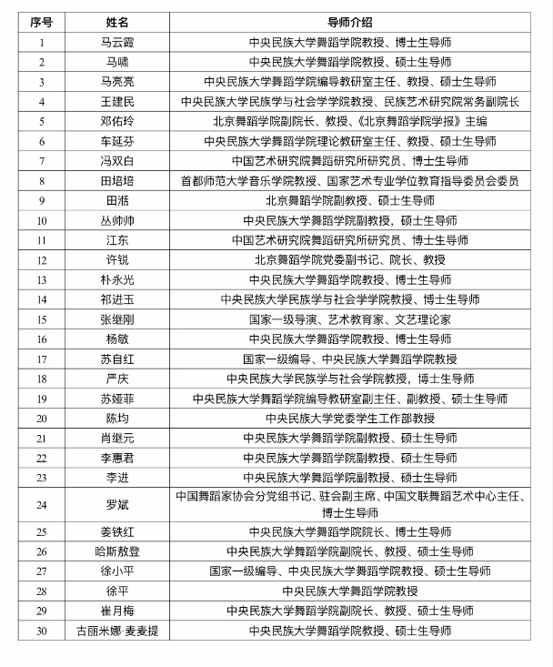 本项目师资力量雄厚,集合首都高校乃至全国在民族舞蹈创作研究方面的专家,以及中央民族大学铸牢中华民族共同体意识研究基地的权威学者等师资力量,共同构建起一个集理论研究和创作实践于一体的民族艺术研究基地,打造多元化的教学团队,致力于以优势资源培塑民族舞蹈创作研究骨干人才。
