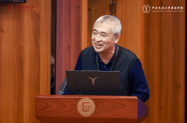 原副院长、党委书记、舞蹈学科主任、博士生导师向开明教授以《共鉴共生:民族舞蹈三大体系建构中课程体系与教材的“再构”》为主题进行分享,指出2022年舞蹈学科成为独立学科,2024年开启学术和专业博士学位分类发展,如何建构新人才培养模式是机遇与挑战。“再构”定位以中华民族共同体意识与育人双向并行为点,调整、重组和拓展课程及教学内容为线,适应不同层次人才培养目标和教学需求为面。舞蹈教育从单一术科技能型、学术型教育形成“三轨并行”模式,课程体系与教材“再构”经历多个阶段。其目标是构建高层次学科体系与培养高端舞蹈艺术人才,民族地区专业艺术院校肩负民族艺术人才培养重任,具有“民族”“育人”“学科”三重属性。专业舞蹈博士人才培养处于探索阶段,要建构舞蹈本体论等学术体系,借鉴其他经验形成中国现代化知识体系。未来要以东方哲学思想开辟培养跨文化高层次舞蹈人才新路,引领世界舞蹈发展。