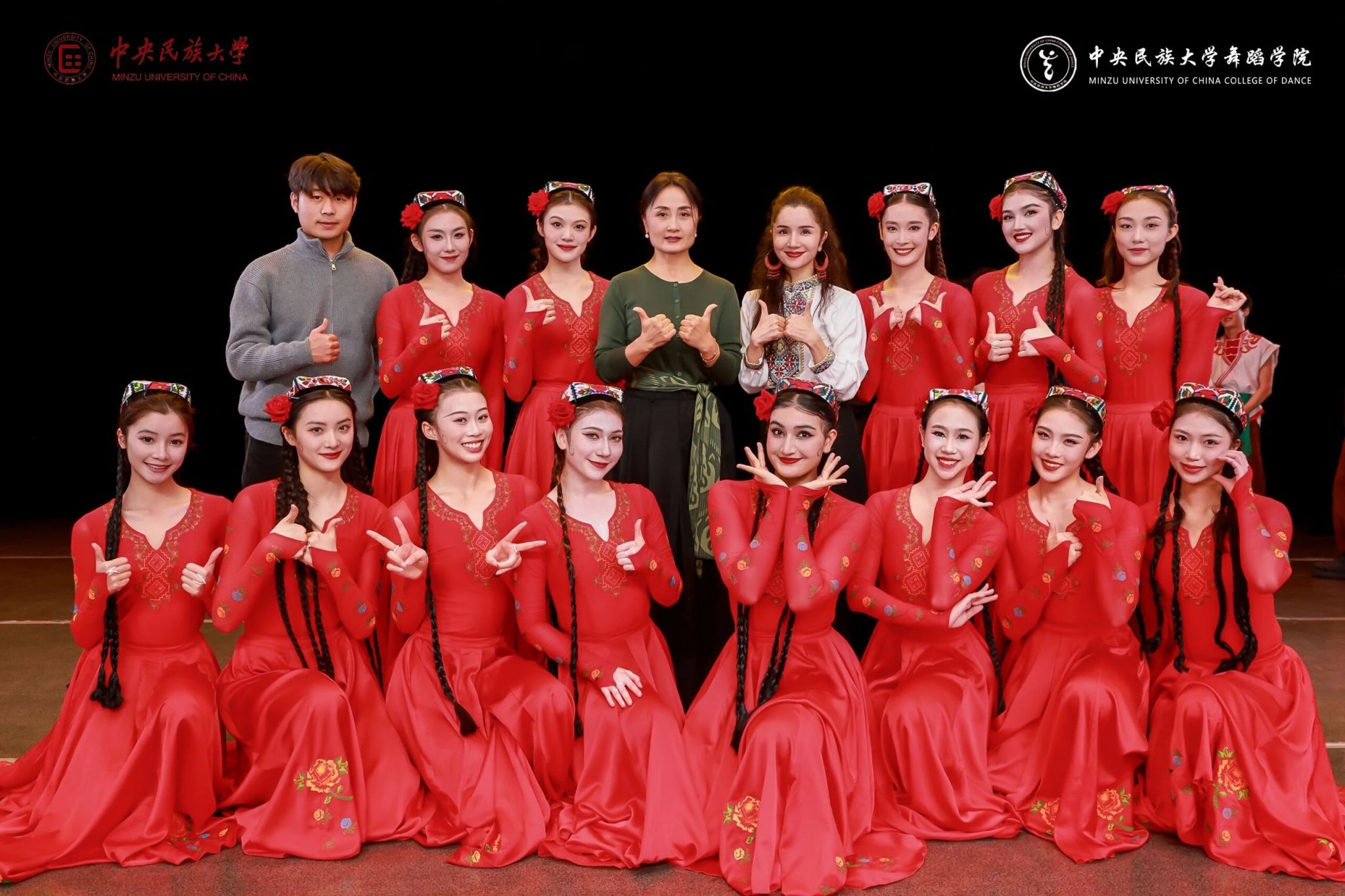 易国刚、美哈阿依·喀依尔、赵帅及新一代古丽米娜·麦麦提等教师,在实践探索中构建出民族风格鲜明、教学模式规范的教学路径。依托中央民族大学本科一流课程建设,课程已出版《维吾尔族舞蹈女班教程》并获北京市优质本科教材。本次教学展示从教程选取典型组合,以由浅入深逻辑,从基础、步法教学拓展至地域风格性教学,再到道具运用综合教学,力求风格、技术与舞台表现力统一。课程始终以铸牢中华民族共同体意识为核心,强化艺术教育与思政育人协同,致力于培养具有文化自觉与专业素养的舞蹈人才。