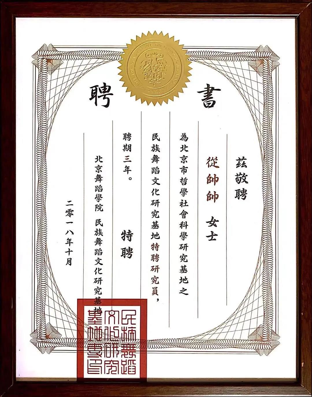 第二教工党支部委员;北京市舞蹈家协会会员,北京市哲学社会科学研究基地特聘研究员,全国“首批全国高校黄大年式教师团队”成员。