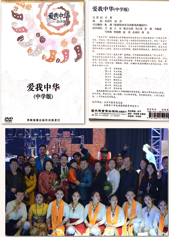 由北京市教委主办,中央民族大学及海淀区教委承办,本人与赵帅合作编创的《爱我中华韵律操》系列,由北京市教委全面推广。韵律操依据年龄特点共有三个版本:活泼轻快的小学版《花开中华》、动感十足的中学版《爱我中华》以及极具韵味的大学版《多彩中华》。该套韵律操根据我国各民族特色,结合民族舞蹈素材和广播体操的结构所编创。其中包含汉族、藏族、蒙古族、维吾尔族、傣族、朝鲜族、佤族、彝族及古典舞身韵的典型舞蹈动作和特色音乐组成。该套韵律操研发自2011年,至今已有十年,成为我校各专业新生入学的“必修课”,并在国内(包括台湾)很多城市的中小学、大学得到广泛的推广和使用。
