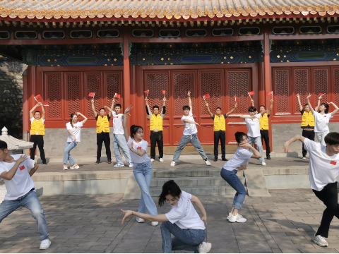学生第三党支部成员在支部书记李飞的组织安排下,由青年教师赵松作指导,历经一个多月的辛勤排练,最终形成成熟的展演内容。石泰集团有限公司第一党支部书记龙胜利积极推进现场展演。展演最终在石景山区模式口历史文化街区包括法海寺、古道斯存、北京燕京八绝博物馆、模式口大街,以及石泰集团驻地等地进行。展演主要采用民族民间舞蹈歌颂党和祖国,赞美新时代。