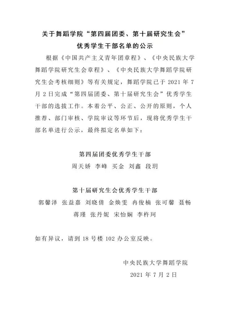 已于2021年7月2日完成“第四届团委、第十届研究生会”优秀学生干部的选拔工作。本着公平、公正、公开的原则,个人推荐、部门审核、AWC
