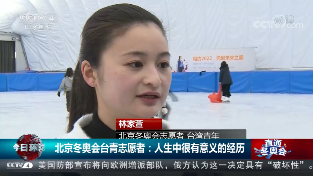 的研究生林家萱,作为台湾青年代表参加了台湾青年冬奥城市志愿者服务队。