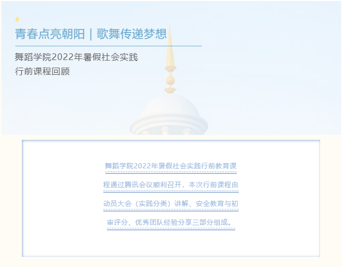 社会实践优秀团队,与同学们分享实践过程中的心得体会与撰写成果的经验,为本次的暑期社会实践注入活力!