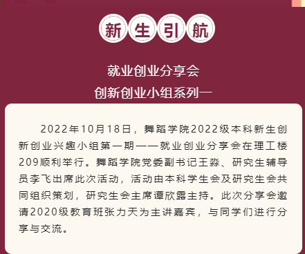 分享会开始,王淼副书记向同学们介绍兴趣小组的系列活动是针对2022级新生未来职业规划及未来就业拓展,沟通交流个人创新创业历程与经验,为同学们提供优质交流平台和就业、创业经验。她表示希望通过这一系列的新媒体创业经验分享,为同学们提前做好个人职业规划提供方向性的帮助与参考,在未来四年的大学校园生活中收获属于自己的成长。