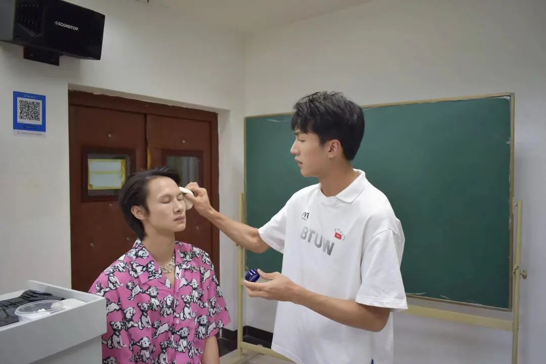 研究生会副主席杨家渝主持。此次分享会邀请2022级研究生陈平同学作为主讲嘉宾,内容建立在第一期的彩妆理论基础上,通过对实操演练的讲解与指导,让同学们在面对今后各种赛事及演出需要时能更精细、更从容不迫地进行自我妆造,提高同学们的化妆技巧。
