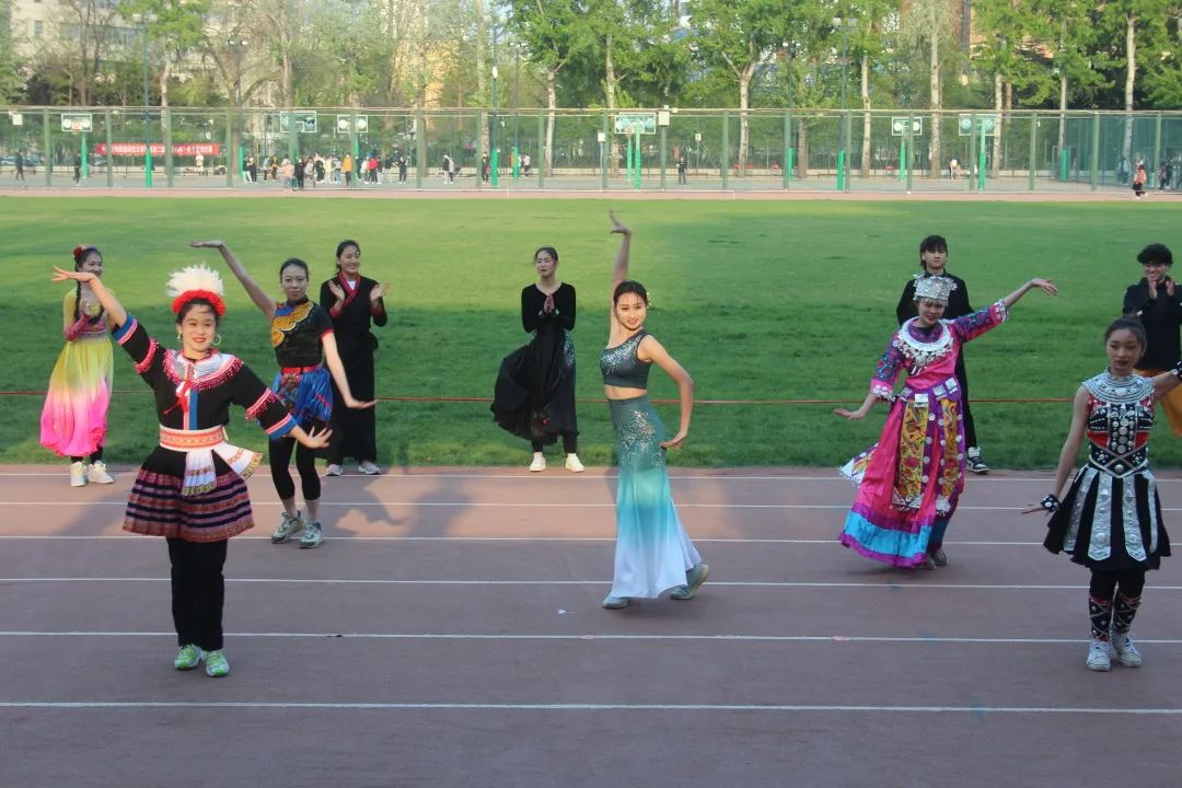 20级英才班与18级英才班为我们带来了快闪节目,他们身着各具特色的少数民族服饰,轻盈的舞姿,自信的笑容,在《爱我中华》的歌声中洋溢青春的活力与激情,展现新时代大学生像石榴籽一样紧紧抱在一起,凝聚起同心共筑中国梦的青春力量!