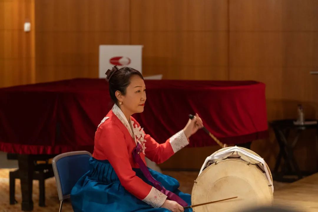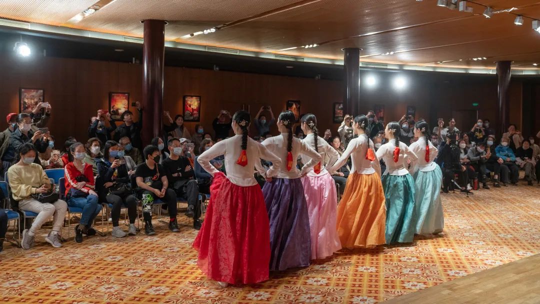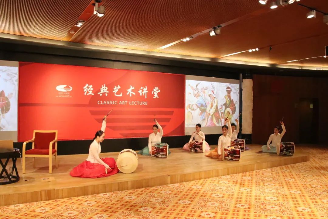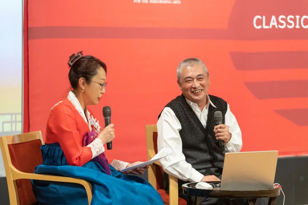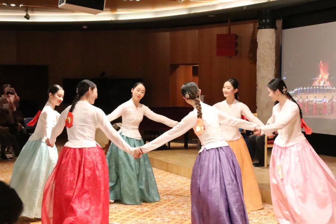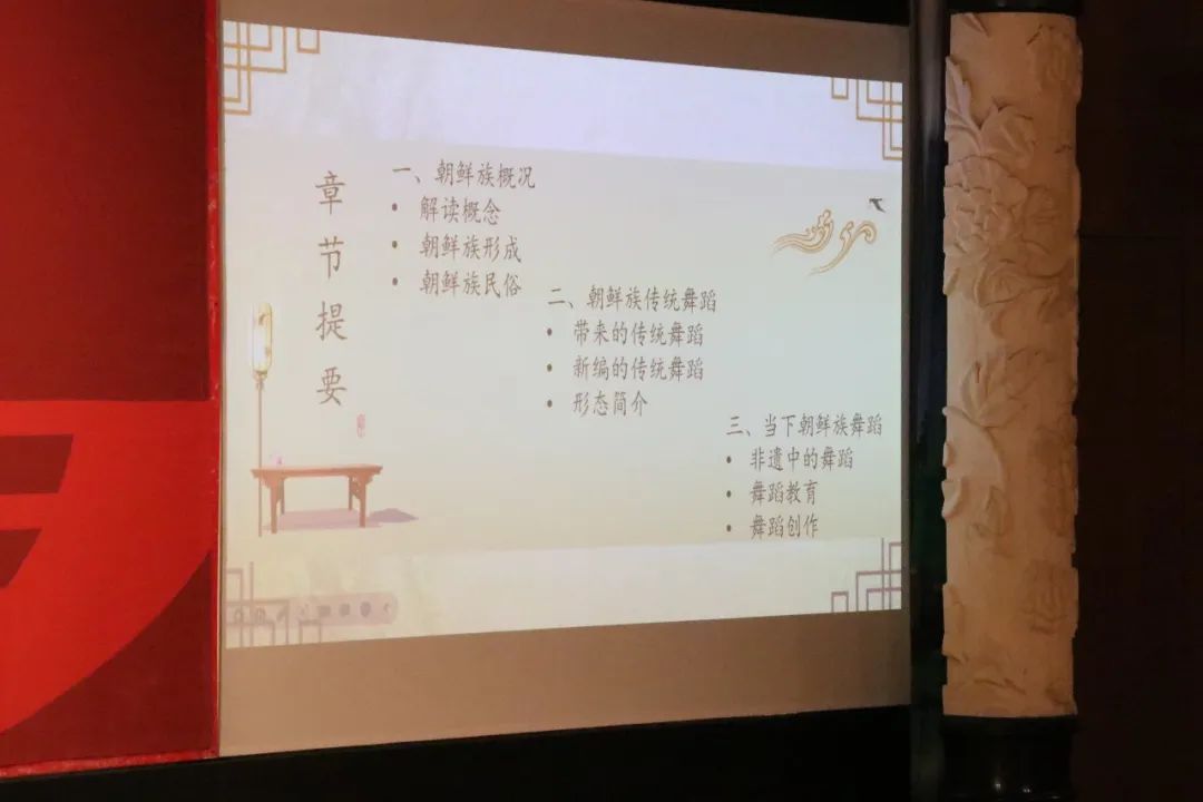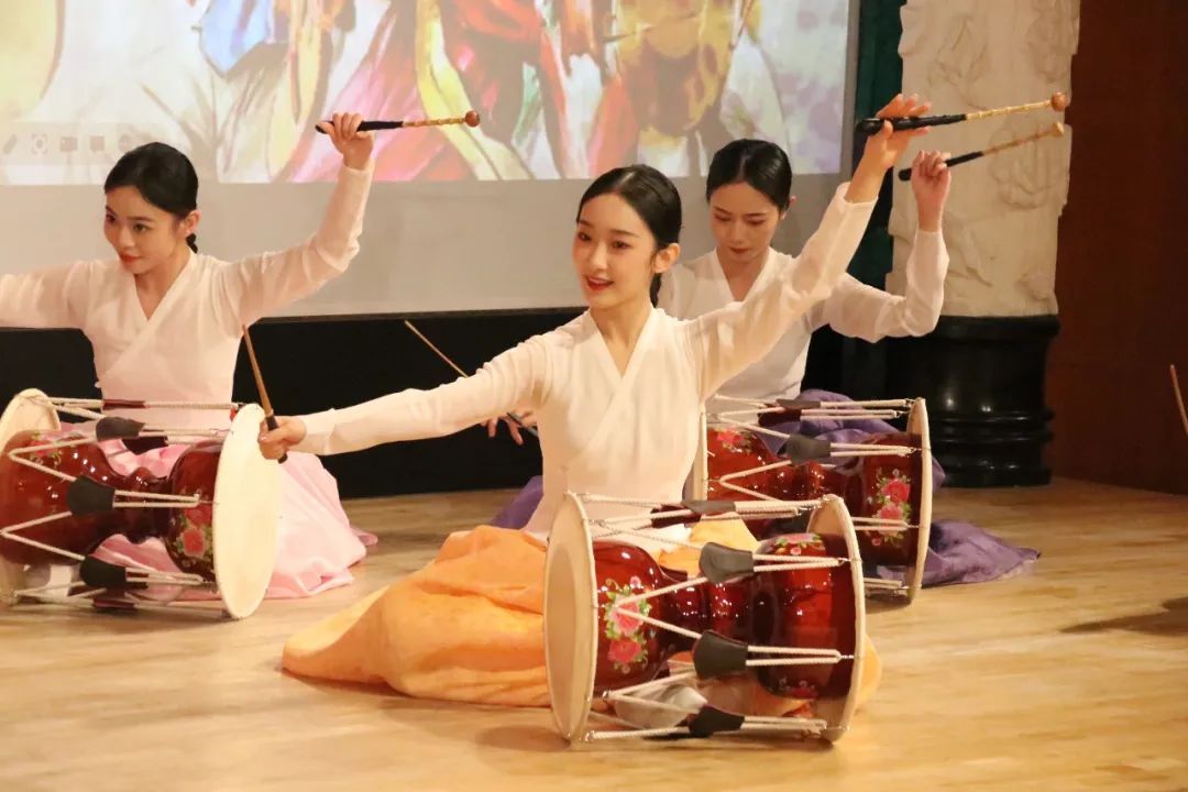 崔月梅教授的硕士生进行了朝鲜族长鼓舞表演,引起了现场观众的学习热情。接下来,朴永光教授介绍了“民族”与“舞蹈”的概念,并为大家细致讲解了民族舞蹈与民间舞蹈、传统舞蹈与当代舞蹈的区别。朴永光教授与崔月梅教授以朝鲜族的发展历史为出发点,从生产民俗、生活民俗、精神民俗三个方面进行了朝鲜族民俗文化讲解,使观众对朝鲜族舞蹈文化有了较为全面的了解。